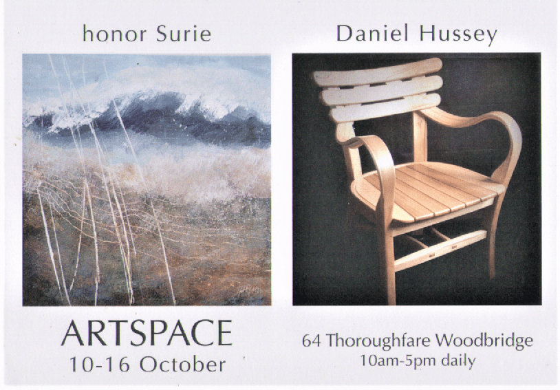 Exhibition in Woodbridge Uncategorized Paintings by Honor Surie, Chairs by Dan Hussey Share this: Click to share on X (Opens in new window) X Click to share on Facebook (Opens in new window) Facebook Like Loading... Related
