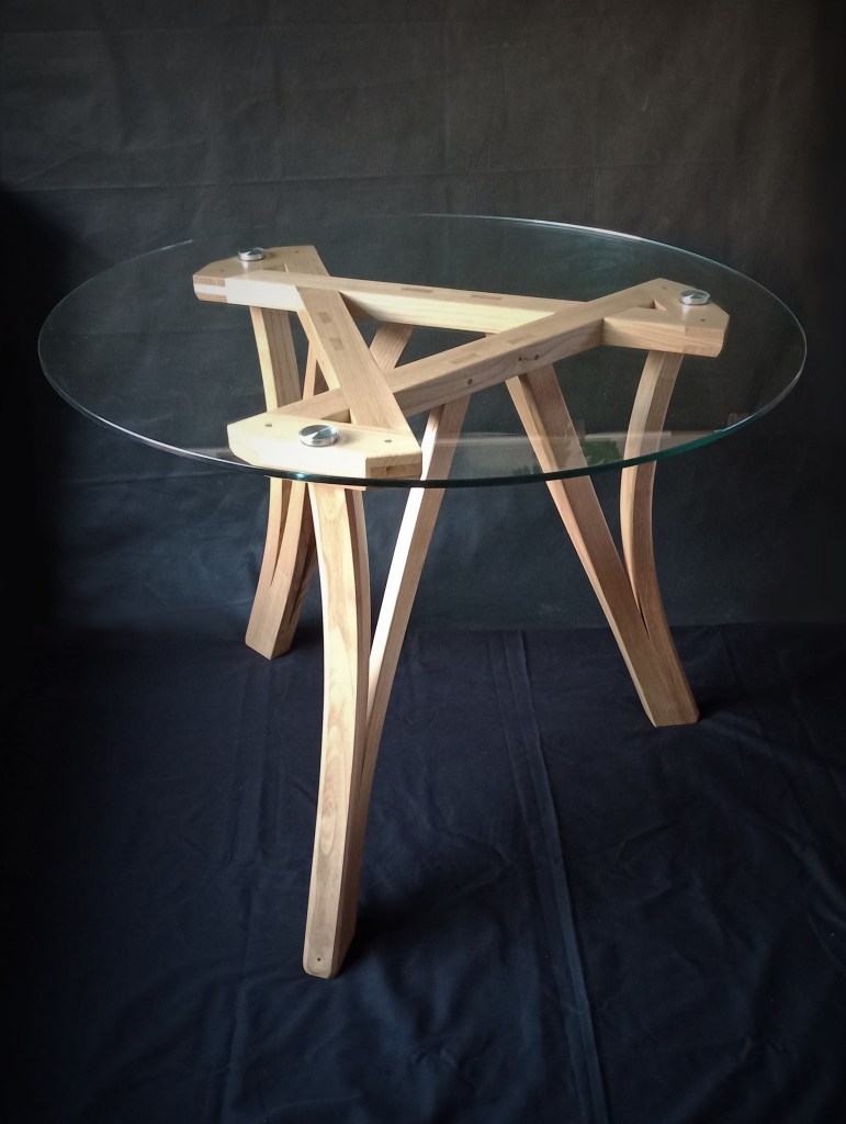 3 Legged Table in Sweet Chestnut Uncategorized 1 meter diameter toughened glass top 10 mm thick. Share this: Click to share on X (Opens in new window) X Click to share on Facebook (Opens in new window) Facebook Like Loading... Related